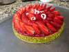 Pâte sablée amende, crème diplomate, framboise ou fraise.
